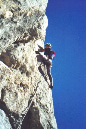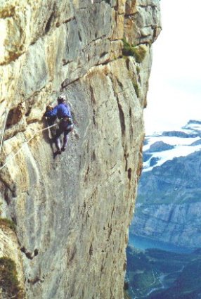 Martin Zahn climbing the "Bergweg" ( 6a ) on the "Burgflueh" near Wimmis.