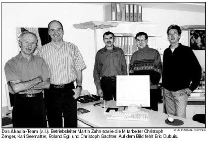 Das Akadia-Team hat sich auf so genannte Open-Source-Software (freie Software) spezialisiert. «Wir setzen sie wo immer möglich und sinnvoll ein», betont Martin Zahn. Bekanntestes Beispiel hierfür ist Linux. Zahn glaubt, dass sich Open Source künftig weltweit durchsetzen wird, «wie Beispiele aus Deutschland bereits zeigen».